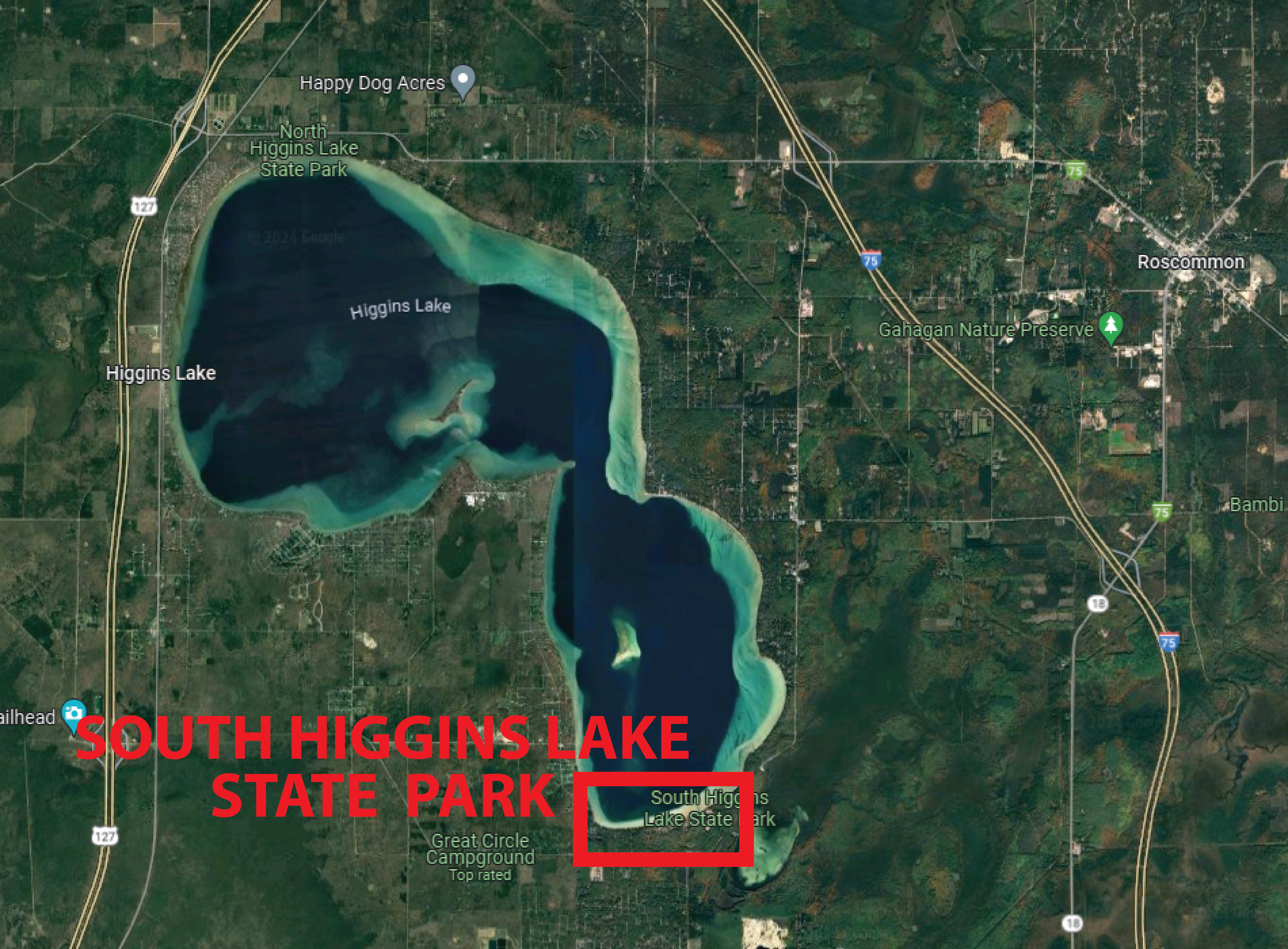 South Higgins Lake State Park includes 305 acres, 512 modern campsites, picnicking, an excellent boat launch, and most importantly, more than one mile of sandy beach. We typically stay on the west side of the campground, in the sites at the north end of the middle loops. Boat setup and launch area are immediately north of the camping area. Boat commonly access the beach through the gap between sites 363 and 364 so the majority of participants will camp near these sites.